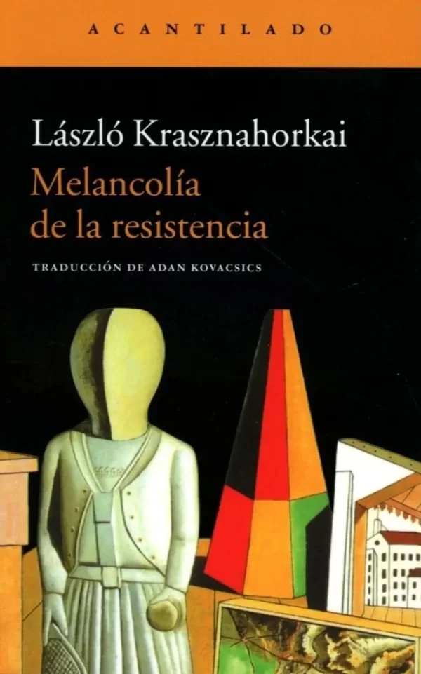 Tragicomica y melancólica, esta novela nos presenta un mundo plúmbeo y totalitario, dominado por fuerzas ciegas e impersonales. Un escenario humano desolador en el que la inteligencia es anulada por la fuerza bruta y la violencia, y en el que el caos arrastra irremediablemente a unos personajes que, entre el conformismo y la insignificancia, no aciertan a crear un orden nuevo menos cruel y menos gris.El estallido de violencia no alcanza siquiera el rango de revolución y la vida transcurre, en esta pequeña y anónima ciudad húngara, sumida en una atmósfera de terror y amarga ironía. Melancolía de la resistencia es una obra maestra del humor negro.