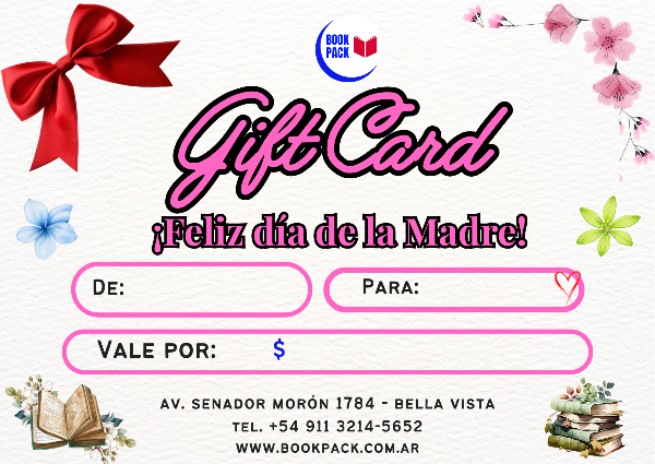En este día tan especial, como lo es el "Día de la Madre", regalale una Gift Card de Book Pack! y que elija ese libro que tanto quiere!!! Las Gift pueden ser en físico o virtuales.